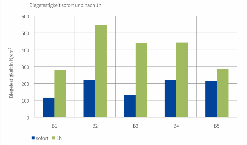 Biegefestigkeiten von Cast Clean®-Bindersystemen bei Warm-Box-Härtung (170°C, 30s Härtezeit, 3% Binder)